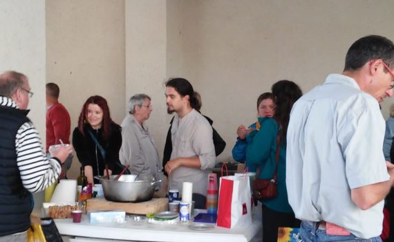 La distribution du vendredi 8 septembre a été très animée. Avec 6 producteurs présents : légumes, oeufs, cidres et poirés, miel, volaille, pâtisseries, les consom’acteurs sont venus nombreux soutenir Eric, notre maraicher dont les cultures ont été durement touchées par la grêle la semaine dernière. Le velouté de courgettes (merci […]