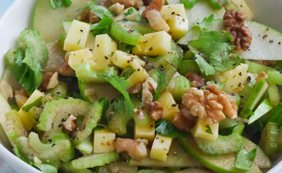 Salade de céleri branche, pomme, noix, fromage