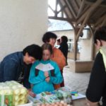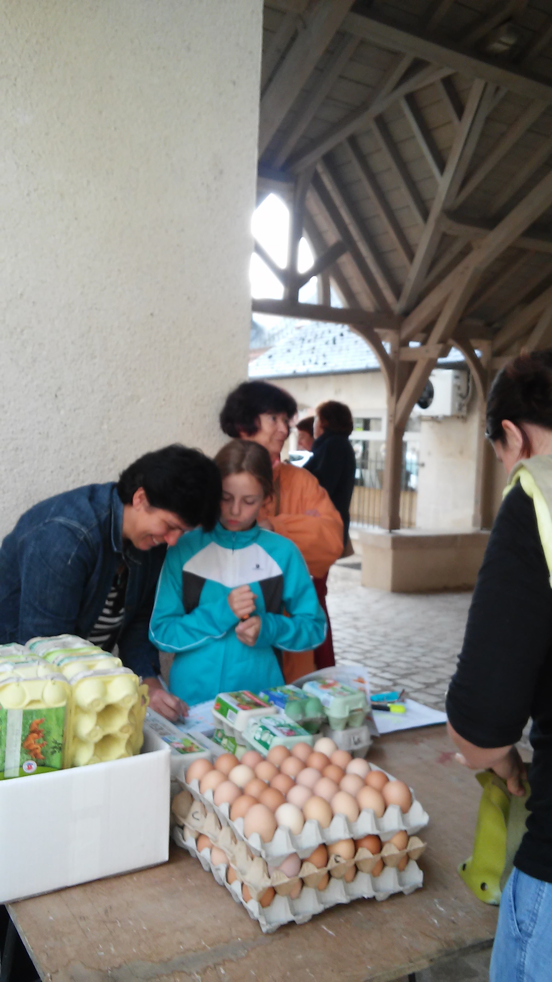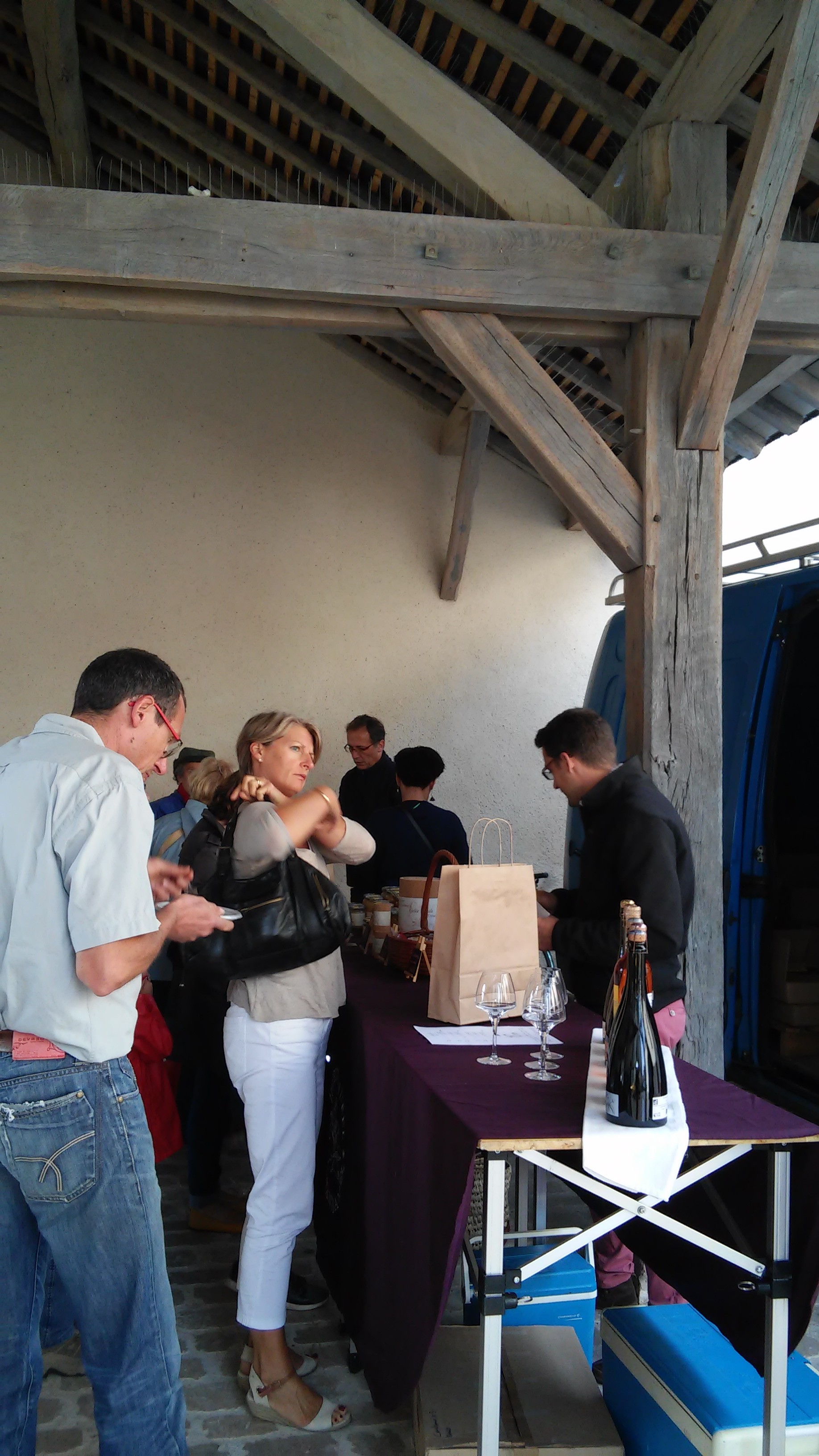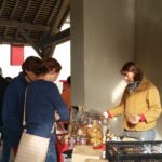 La distribution du vendredi 8 septembre a été très animée. Avec 6 producteurs présents : légumes, oeufs, cidres et poirés, miel, volaille, pâtisseries, les consom’acteurs sont venus nombreux soutenir Eric, notre maraicher dont les cultures ont été durement touchées par la grêle la semaine dernière. Le velouté de courgettes (merci à Sandrine) et la compotée de poires, confectionnée sur place (merci à tous), ont été appréciées.